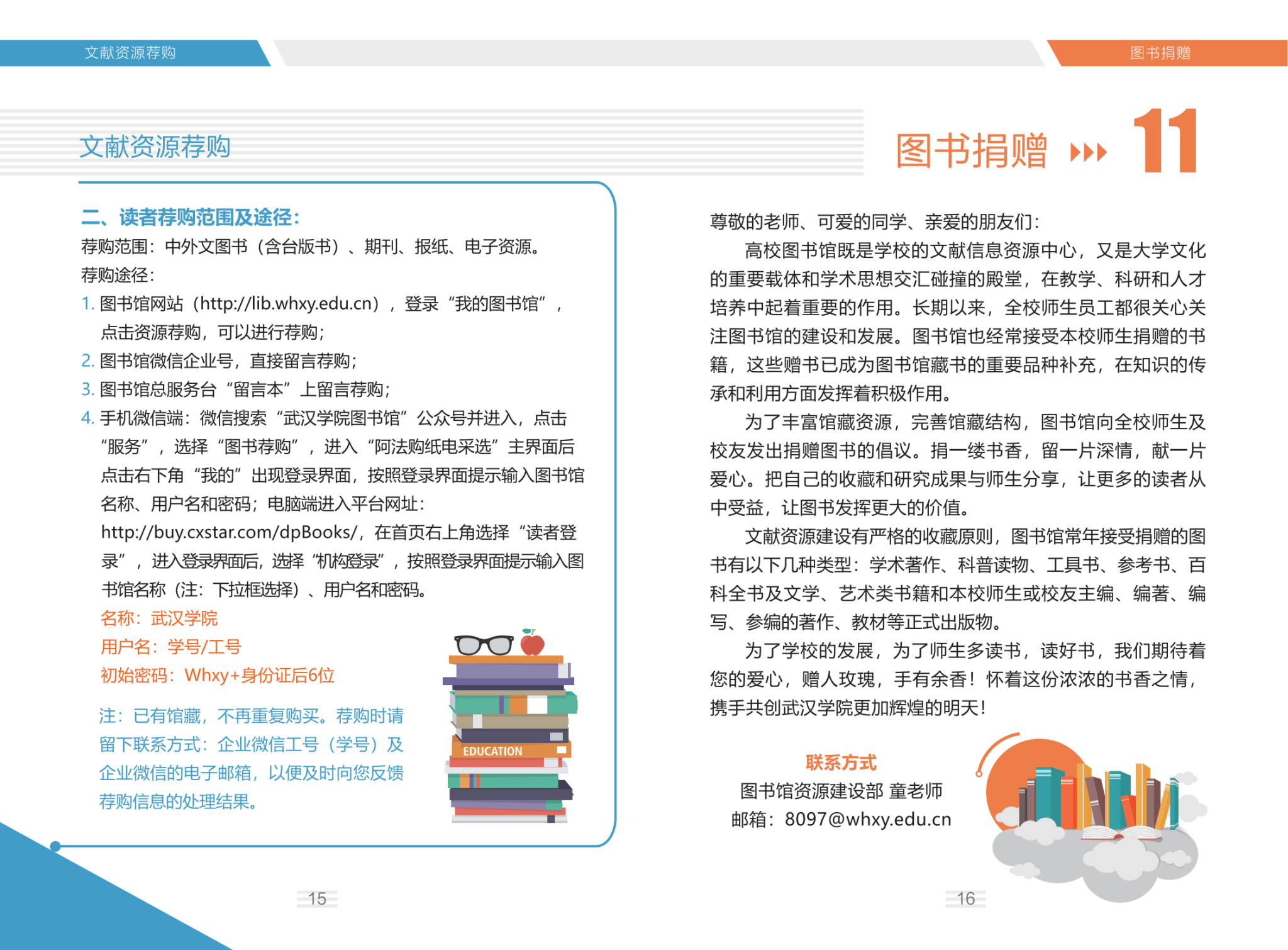 地址:湖北省武汉市江夏区黄家湖大道333号 邮编:430212 邮箱:lib@whxy.edu.cn 服务电话:027-81296971
