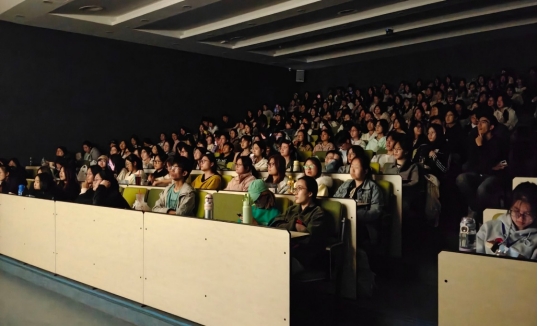 随着灯光暗下,影片正式拉开帷幕。《律政俏佳人》讲述了一位看似只懂时尚的“金发美女”艾丽·伍兹,为了挽回男友,毅然考入哈佛法学院,并凭借自身的努力、善良与智慧,在严谨甚至刻板的法律界赢得尊重与成功的故事。影片情节轻松幽默,却又饱含深意。在近两个小时的观影过程中,报告厅内笑声与掌声不断。女主角艾丽不惧偏见、突破自我、永不言弃的精神深深打动了在场的每一位观众,她用实际行动证明了“智慧与美丽可以并存”,自信与努力才是成功的基石。