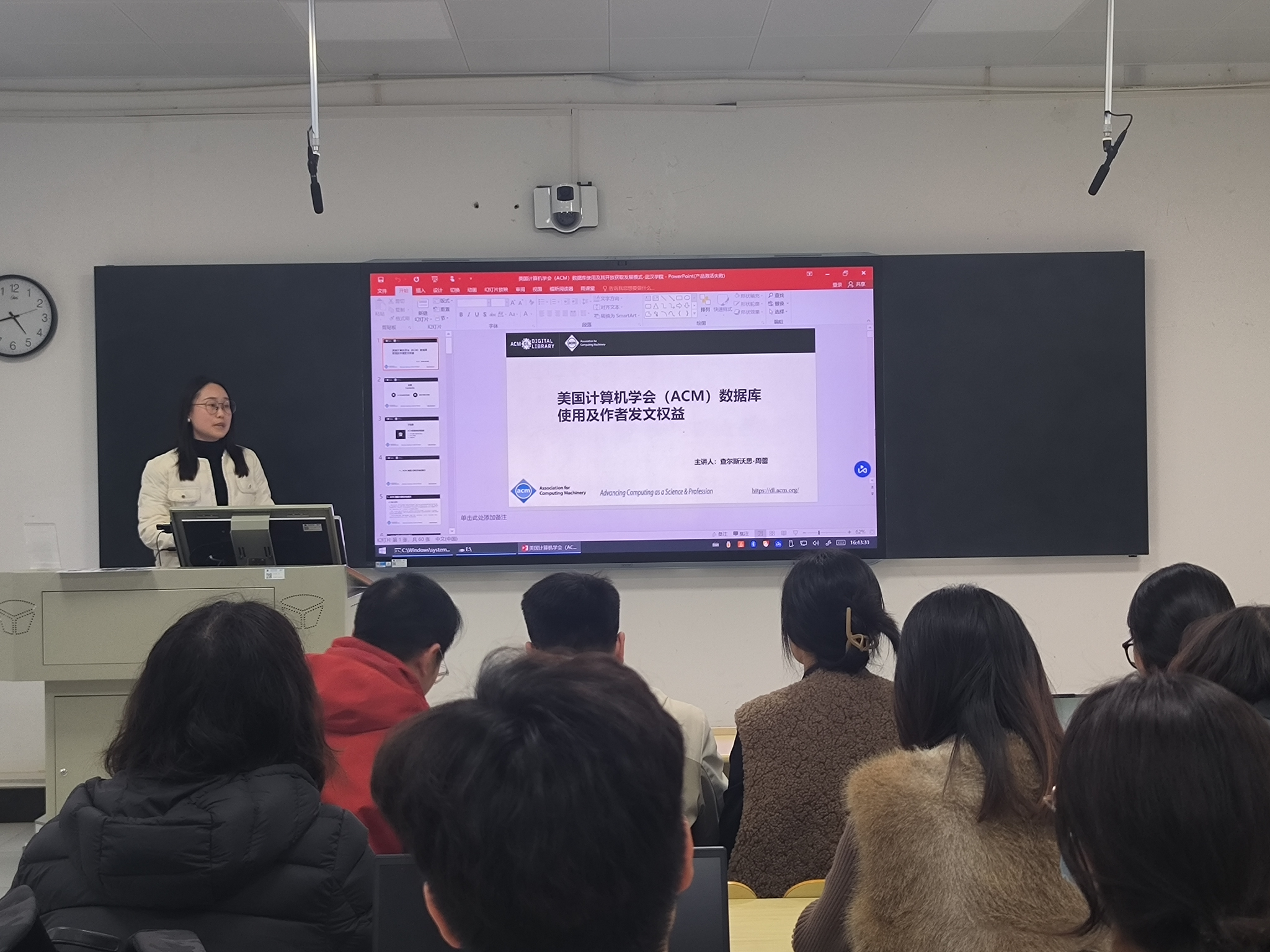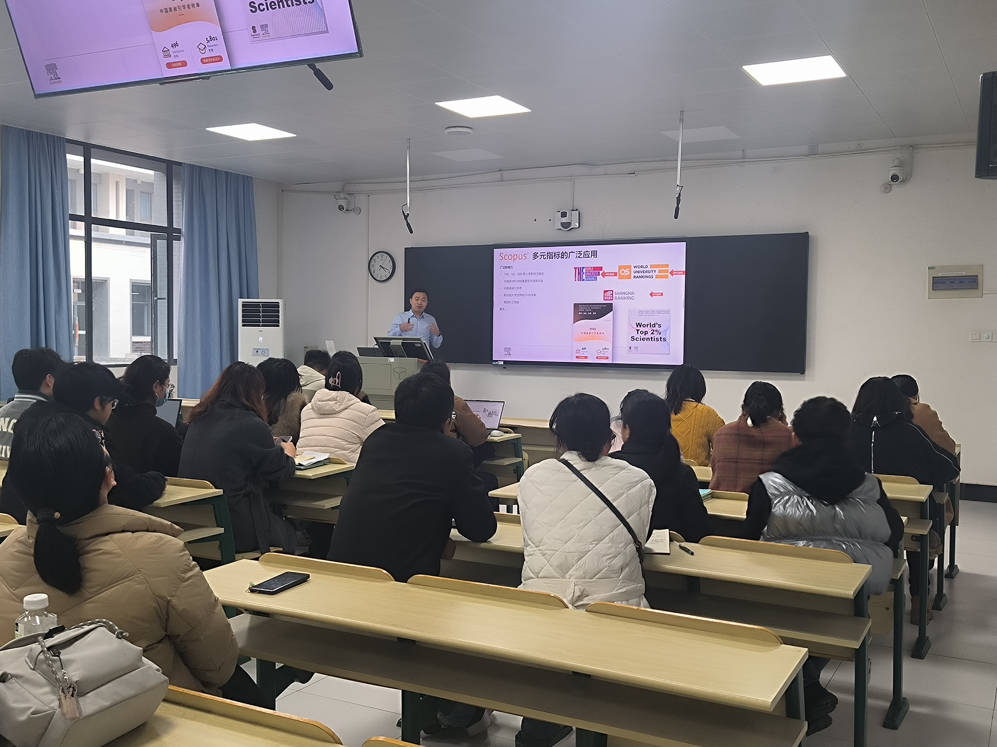 在深度培训环节,为确保培训的专业性与实用性,图书馆特别邀请到试用的三家外文数据库供应商的资深专家专程前来,为师生进行系统讲解与针对性指导。科睿唯安高级解决方案专家王振老师系统讲解了Web of Science(SCIE/SSCI/AHCI)在助力高水平科研成果产出、基金项目申请、学术分析及投稿支持等方面的功能;爱思唯尔高级客户经理刘洪新老师深入介绍了Scopus数据库的科研趋势分析与学科应用;查尔斯沃思高级客户经理周蕾老师则针对ACM数字图书馆在计算机科学领域的资源特色和使用策略进行了演示。几位专家还结合信息工程学科的科研需求,进行了针对性演示与指导。讲解过程中,师生积极参与互动,针对数据库使用中的具体问题踊跃提问,现场气氛活跃。