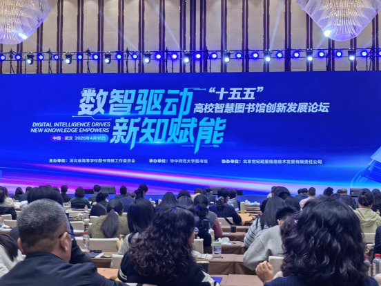 本次论坛由湖北省高等学校图书情报工作委员会主办,华中师范大学图书馆承办,北京世纪超星信息技术发展有限责任公司协办。论坛以“数智驱动 新知赋能:擘画‘十五五’高校智慧图书馆发展新图景”为主题,大会议程含领导致辞、成果发布、主旨报告、专题报告等多个环节,来自全国高校图书馆及相关机构的近1500名代表参会。